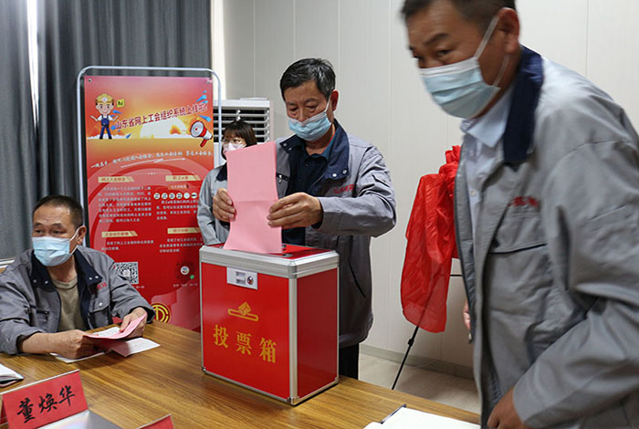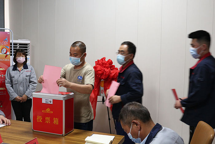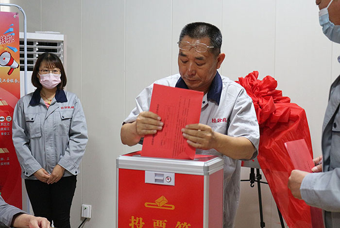 2022年06月16日山東桂冠機械有限公司一屆一次工會會員代表大會會議準時召開,出席本次工會會議重要領導人員有:市總工會黨組成員副主席王霞同志,濱河片區黨工委副書記王澤和同志,桂冠機械有限公司董事長楊桂剛同志等相關領導,在濱河片區總工會專職副主席孫木榮宣讀完市總工會《關于同意召開山東桂冠機械有限公司工會一屆一次會員代表大會的批復》后,出席本次會議的25名公司在職人員在兩位選舉檢票人的監督下通過《選舉辦法》民主選舉出公司第一屆工會委員會主席及委員,工會經費審查委員會主席及委員,審議通過公司第一屆女職工委員會,勞動爭議調解委員會。